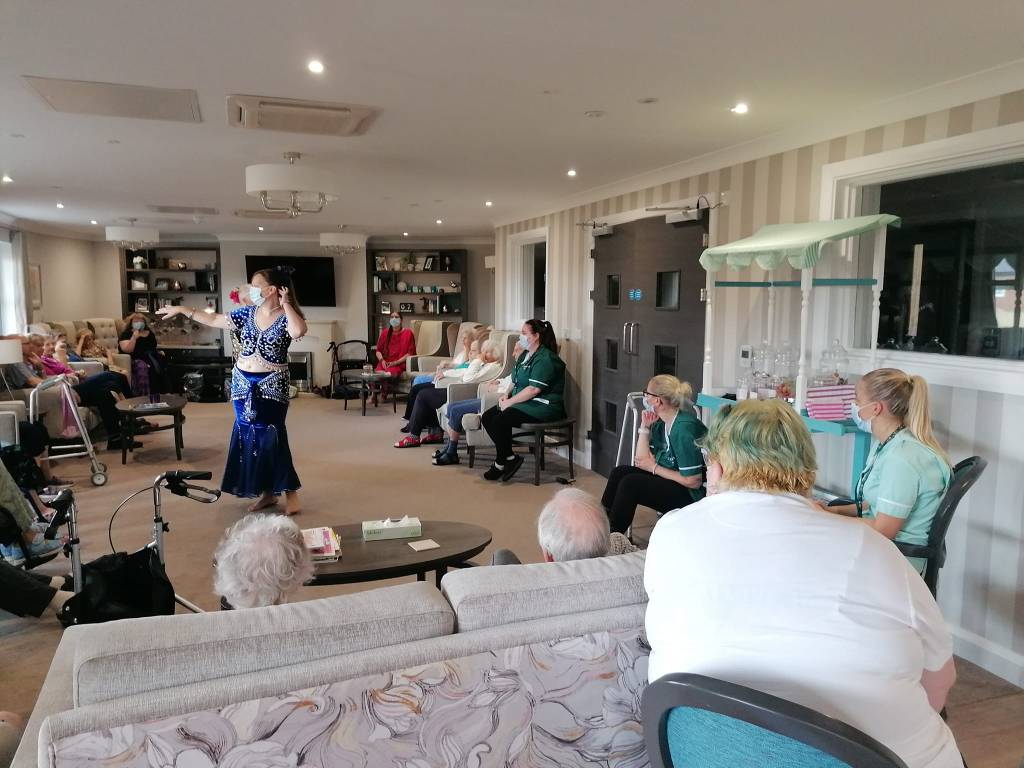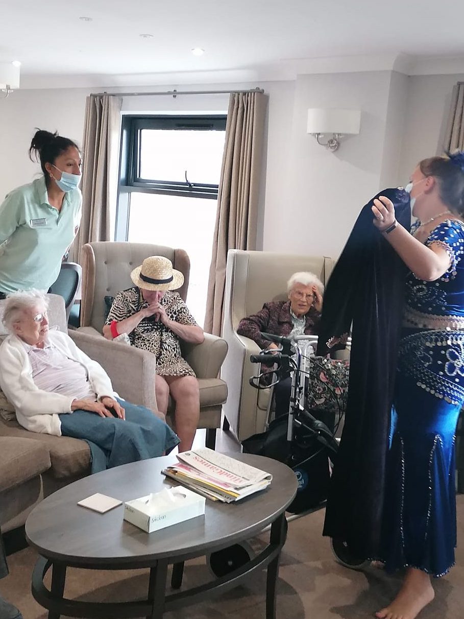 We regularly visit care homes and retirement homes in the area to perform some dances for them, and get the residents dancing along within their own capabilities with some basic moves.We also give a talk on the history and evolution of bellydance and its costumes, dispelling myths and challenging misconceptions of this ancient style of dance.